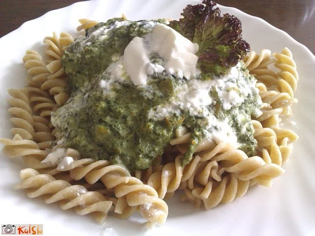 Čebulo čim bolj drobno sesekljamo in jo popražimo, da postane mehka. Dodamo nariban korenček in mu prilijemo toliko vode, da se pokuha. Blitvo narežemo na tanke trakove, nekaj pa jo spasiramo s paličnim mešalnikom. Dodamo blitvo. Ko je korenček skuhan, dolijemo nekaj vina. Dodamo jušno kocko in ostale začimbe, po potrebi dolijemo nekaj vode. Jajce in kislo smetano žvrkljamo skupaj in prilijemo omaki. Gorgonzolo dodamo na koncu po okusu.