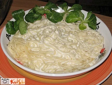 Krasna omaka za špagete. Količina je zadostovala za 4 lačne, le malo več špagetov smo skuhali. Zelo dobro, za moj okus bi sicer lahko bilo brez vina, a ostalim je bilo zelo všeč. V bazi je še nekaj zelo sličnih receptov, bomo počasi preizkusili vse, pa da vidimo, kateri je najboljši. Mah kaj, ko pa imamo strašno radi tako testenine v kakršnikoli obliki, kot sire - posebej take bolj pikantne ![]()