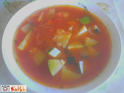 Najprej seveda nasekljamo vso zelenjavo na manjše kockice, edino čebulo narežemo na tanjše kolobarje ali pol kolobarje.