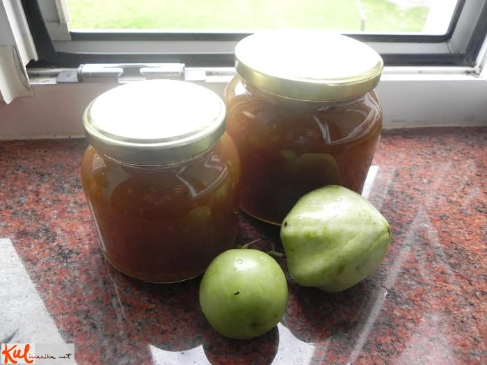Marmelada iz zelenih paradižnikovzeleni paradižniki, jabolka, banane, limonin sok