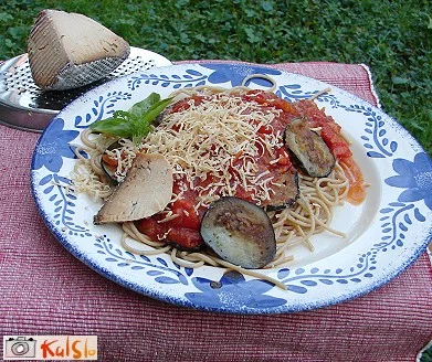 Testenine skuhamo v slanem kropu. Medtem malo pomokamo odcejene rezine jajčevcev in jih opečemo na olivnem olju (najbolje v teflonski ponvi). Na krožnike razdelimo odcejene testenine, jih potresemo z naribanim sirom, po vrhu naložimo opečene rezine jajčevcev, vse skupaj prelijemo z vročo paradižnikovo omako, potresemo s še malo sira in okrasimo s sesekljanim peteršiljem ali baziliko.
