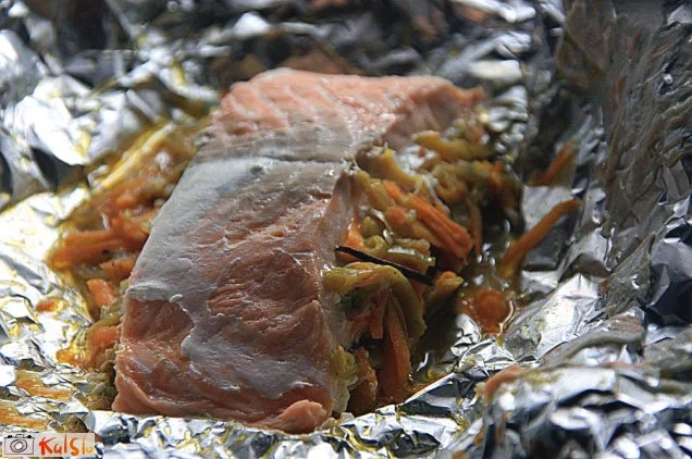 Lososov file pečen v folijijed, katero pripravimo že prej, pred serviranjem jo samo spečemo v pečici