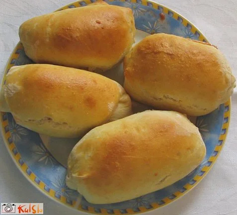 V osoljeno moko vlijemo vzhajan kvas, dodamo margarino in ostalo mleko ter dobro zamesimo testo. Testo razpolovimo in vsako kepico vzhajamo 20 min.
