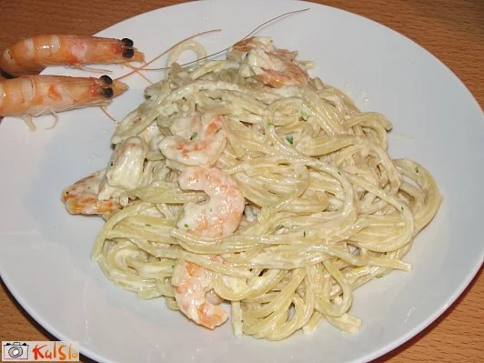 Špageti z gamberi (kozicami)morski špageti s smetano