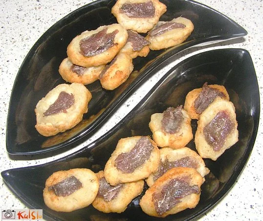 Krapki z inčuni"odrezki" listnatega testa s fileti inčunov