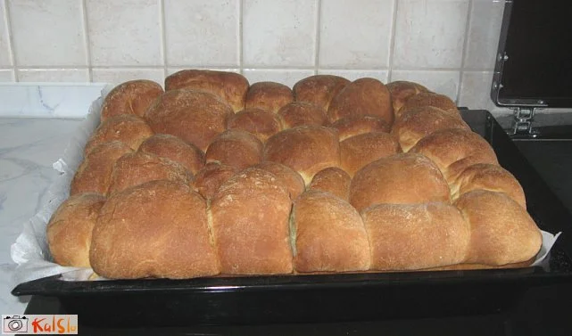 Vzhajano testo razvaljamo na 20 kvadratov. Vsak kos testa položimo na dlan, nanj damo malo marmelade in stisnemo robove skupaj, da nastane mošnjiček. Vsak mošnjiček premažemo z raztopljeno margarino in jih narobe obrnjene položimo testo skupaj v namaščen pekač. S preostalo margarino pa premažemo površino peciva. Pecivo pečemo cca. 30 minut pri temperaturi 180 stopinj. Posujemo ga s sladkorjem v prahu in še toplega ponudimo.