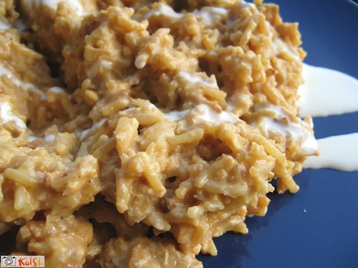 Na malo olja rahlo ovenemo drobno sesekljano čebulo, dodamo piščančje meso in ga opečemo, dodamo paradižnikovo mezgo. Premešamo, pustimo, da se na rahlem ognju pokrito duši nekaj minut, dodamo riž in malo vode, pred koncem dodamo arašidovo maslo ali zdrobljene arašide, kokosovo kremo in smetano. Zadeva mora biti bolj podobna mlečnemu rižu, kot rižu za prilogo. Solimo in popramo po okusu (če je to še potrebno).