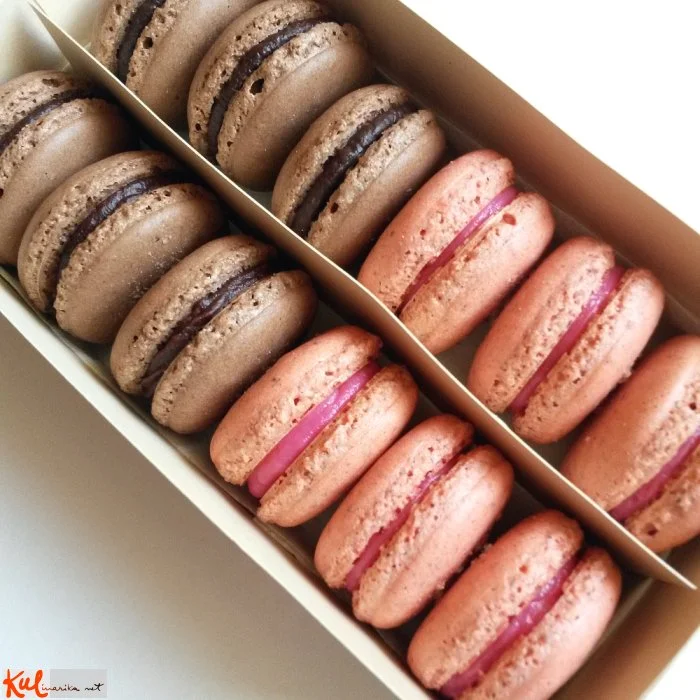 Ko so pečeni, jih je potrebno popolnoma ohladiti in jih šele nato PREVIDNO odstraniti papirja (papir nežno potegnemo iz makrona in ne makron iz papirja).