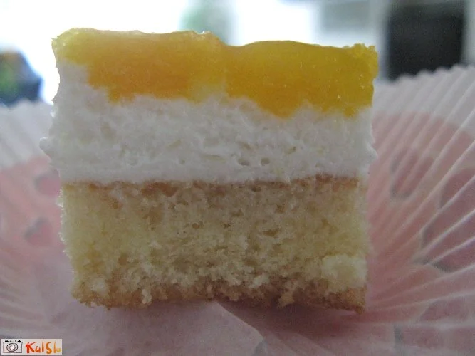 jogurt in sladkor zmešamo. Liste želatine namočimo v mrzli vodi 5 minut, nato želatino ožmemo, jo postavimo par sekund v mikrovalovno pečico, da se utekočini in jo ob stalnem mešanju v tankem curku vlijemo v jogurt. Previdno umešamo stepeno smetano in maso zlijemo na biskvit, ki smo ga pred tem namočili s sokom breskovega kompota. Postavimo v hladilnik.
