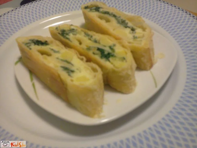 Špinačni zavitek s krompirjemzavitek s špinačo, krompirjem in jajci