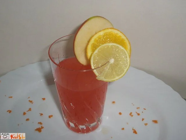 "Jesenski" soksok iz korenčka (majhna količina), jabolk, limoninega in pomarančnega soka ter ekstrakta jagode