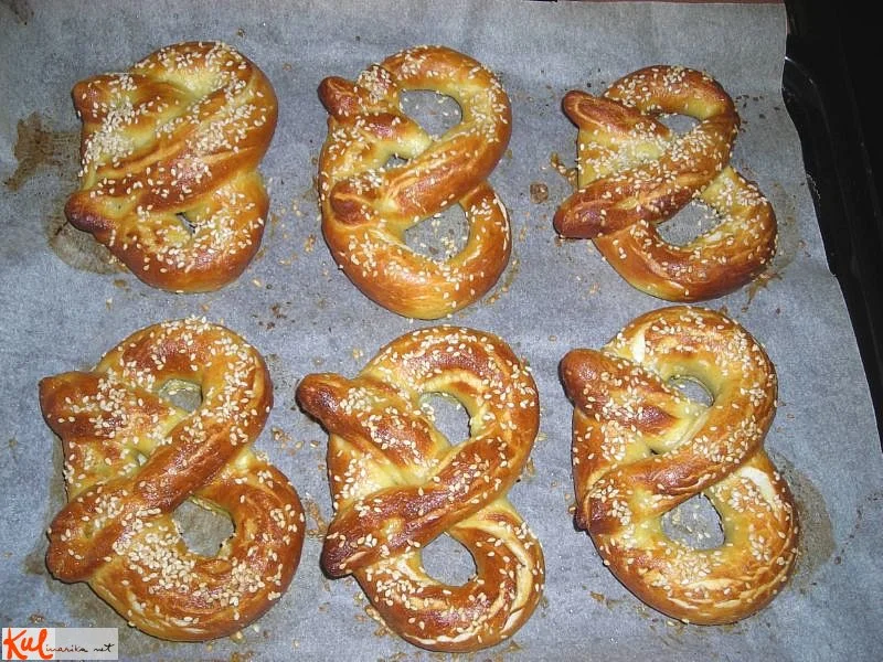 Mehke preste s sezamommehke kruhaste preste, ki jih najprej malo skuhamo in nato spečemo