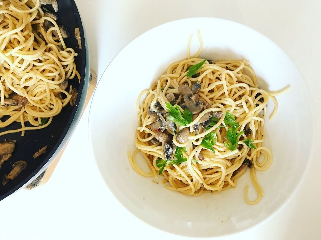 Špageti s kremno gobovo omakošpageti z okusno omako