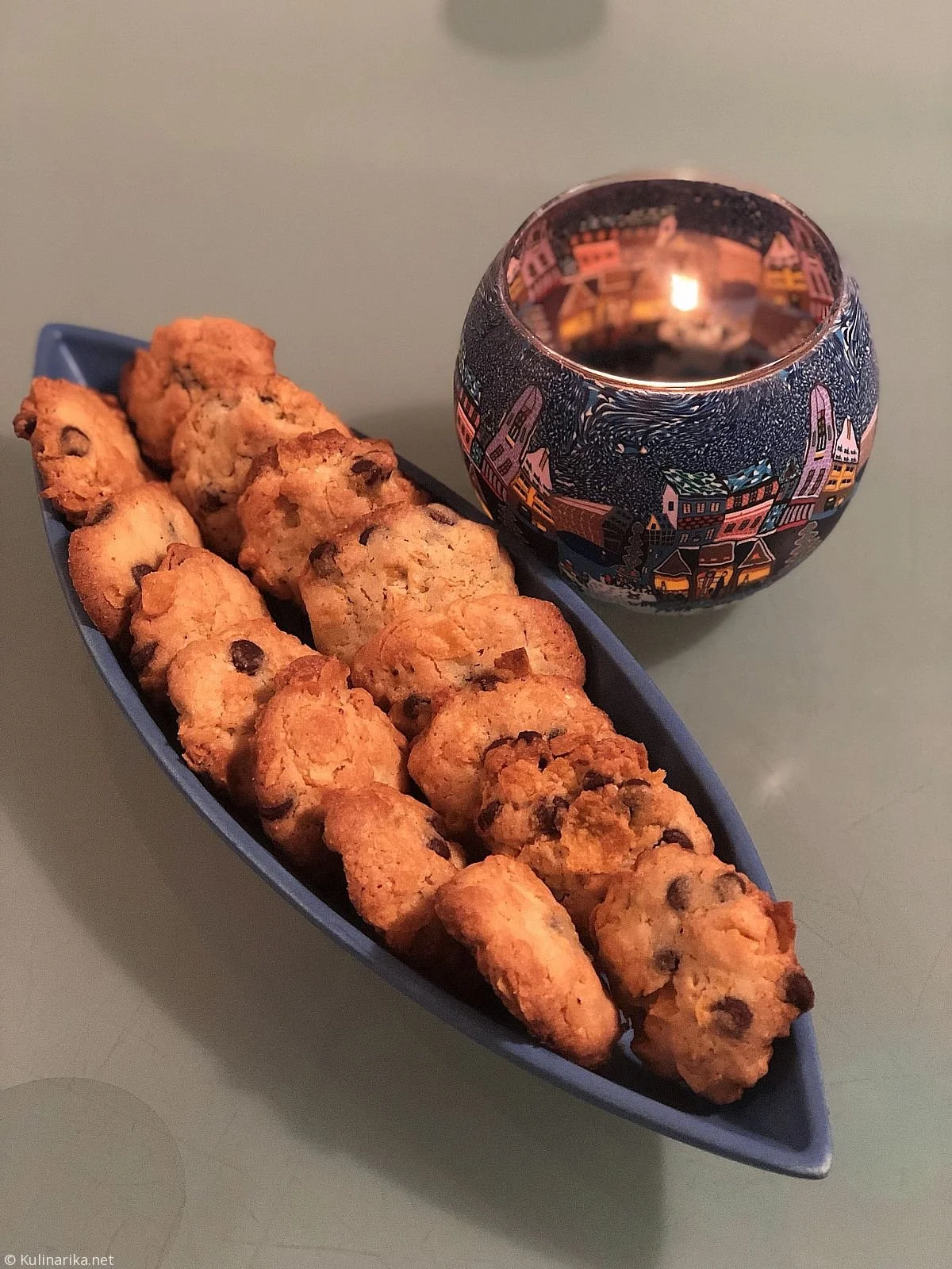 Iz mase oblikujemo za oreh velike piškote, jih položimo na pekač, obložen s peki papirjem, ter pečemo 15 - 20 minut pri 200 stopinjah C.
