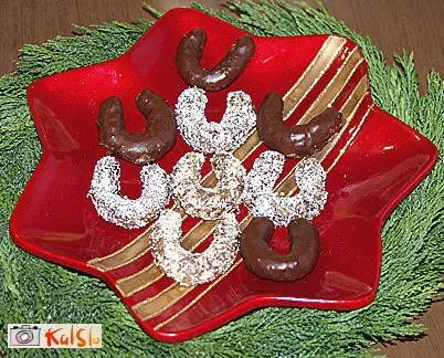 Del suhega sadja drobno zrežemo, del ga zmeljemo. Orehe zmeljemo. Vse sestavine zgnetemo v testo in oblikujemo majhne rogljičke.