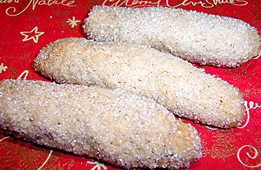 Na plitek krožnik potresemo kristalni sladkor ter v njem povaljamo 7 cm dolge in 2 cm debele paličice, ki jih razvaljamo z rokami. Položimo jih na pekač obložen s peki papirjem ter pečemo 15 minut na 160 stopinj.