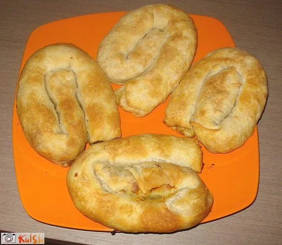 Testo tanko razvlečemo z roko, ga pokapamo z oljem, potresemo z mesnim nadevom in zavijemo ter položimo v namaščen pekač v obliki polža. Tako naredimo z vsemi tremi deli testa.