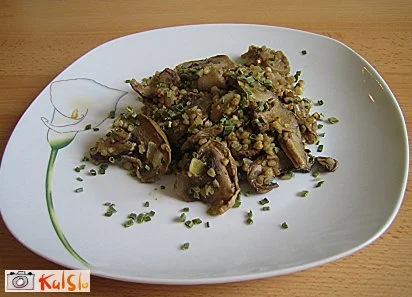 To jed sem ravno včeraj pripravila. Jaz sem naredila malenkost drugače: suhe gobe sem namočila za 2 uri, jih prepražila na čebuli in dodala kuhati skupaj s kašo. Kašo sem kuhala z vodo v kateri so se namakale gobe. Po kuhanju pustite kašo počivati nekaj minut, da popije ostanek vode, ker jo je škoda odlivati, saj je polna vlakninskih hranil. Jed je SUPER. Primerno za tiste, ki hujšamo z 3MD, na OH dan. / MissLady