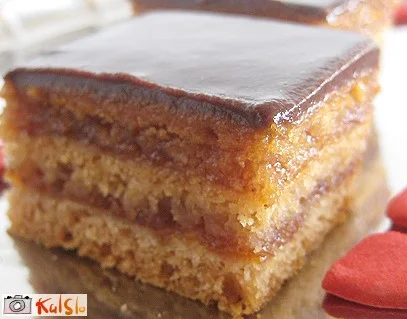 Iz vseh sestavin naredimo testo. Ko je narejeno, ga razdelimo na tri enake dele, prvi del razvaljamo za nožev hrbet debelo, damo v pekač, ga namažemo z marelično (lahko tudi drugo) marmelado, potresemo z mletimi orehi in sladkorjem. Čez to položimo v isti velikosti drugi del testa in ga prav tako namažemo z marmelado in potresemo z orehi in sladkorjem. Čez to položimo še tretji del testa in damo peči. Ohlajeno polijemo s čokoladnim ledom in narežemo na pravokotne kocke. Pečemo na 150 - 180 stopinjah približno 45 minut, dokler ni zgornja plast testa rahlo obarvana.