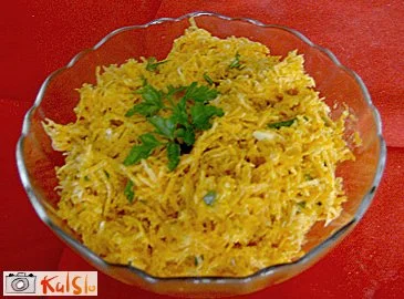 Ta solata je zelo dobra in zdrava, prileže se k vsaki glavni jedi. Tisti, ki gledajo na zaužite kalorije, lahko uporabijo jogurt z manj maščob, ga dodajo več in manj olja.