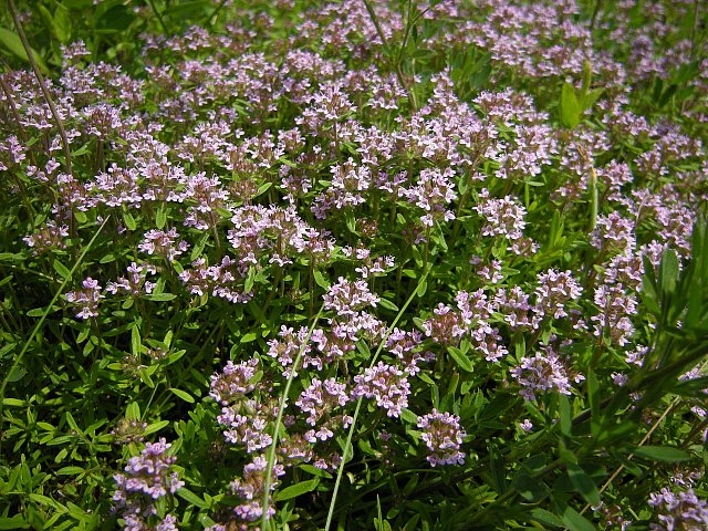 Lat.:Thymus serpyllum, nem.: Feld, ang.:Thymian, ljub. duša, popovec, prprišč