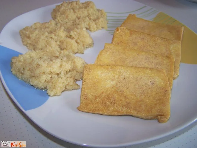 Tofu narežemo na tanjše rezine ali na kockice. Popečemo ga z obeh strani do lepe rumenkaste barve na olivnem olju. Pred koncem pečenja prelijemo z malo sojine omake in po želji dodamo še začimbe. Medtem v vodi skuhamo kuskus. Navodilo za željeno količino je ponavadi podano na embalaži. Ko voda zavre, kuskus nekaj minut še kuhamo, nato odstavimo, dodamo zelišča in po želji zelenjavo. Pustimo v pokriti posodi še nekaj minut, da se kroglice razpustijo. Oboje takoj postrežemo.