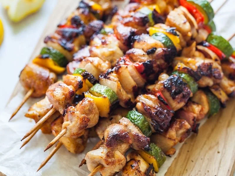 6. Pečena nabodala takoj postrežemo, lahko s skledo solate, pečenim krompirjem ali prilogo iz riža.