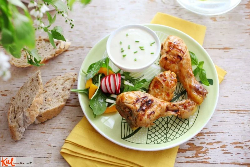 Krače na spodnji strani z ostrim nožem zarežite do kosti, da se meso prej speče. Nato dodajte Vegeta marinado in pustite 30 minut, da se vpije v meso. Nato krače na segretem žaru na vsaki strani pecite 10–12 minut.