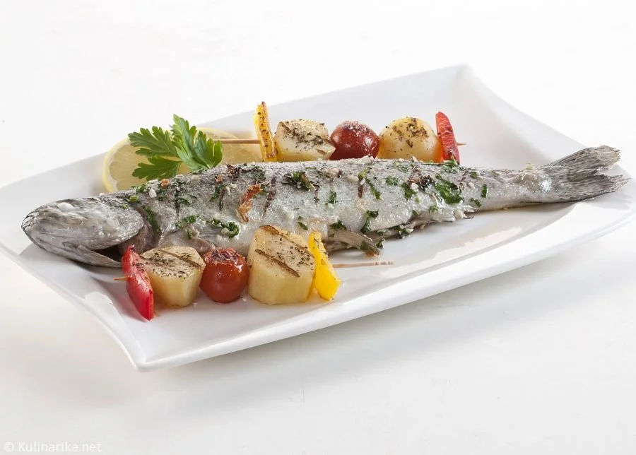 Postrvi: operemo in jih do suhega obrišemo. Iz sesekljanega česna, peteršilja, soka pol limone in oljčnega olja pripravimo marinado, s katero premažemo ribe in jih pustimo počivati pol ure. Preden damo ribe na žar, jim posolimo trebušno votlino. V trebušno votlino damo še lovorjev list in eno ali dve limonini rezini. Postrvi na vročem žaru na vsaki strani pečemo približno 8 do 10 minut. Vmes jih lahko še enkrat premažemo s preostankom marinade. Ko so pečene, jih solimo še po zunanji strani.