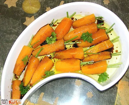 Korenje narežemo na primerne manjše kose (oblika manjšega korenčka) in ga v vreli, slani vodi kuhamo približno 10 - 15 minut, da se zmehča, vendar ne preveč. Kuhanemu naredimo na vrhu z nožkom luknjice in vanj dekorativno zapičimo narezana peteršiljeva stebla (če želimo). Korenje razporedimo v posodo s pokrovom (lahko plastično) in ga prelijemo z mešanico olivnega olja, balzamičnega kisa, soli, nasekljanega česna (ali v prahu)in začimb po želji. Mariniramo čez noč. Ko ga postrežemo, ga dekoriramo še s svežim peteršiljem.