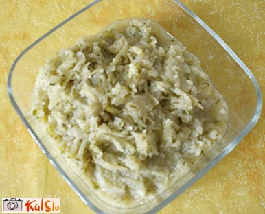 Na olju pražimo sesekljan peteršilj s česnom in na kolobarčke narezan koromač, dodamo sol in poper. Tik pred koncem pa še žlico drobtin.