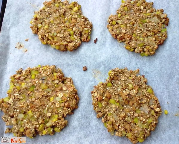 Nato damo vse skupaj v posodo, dodamo še kosmiče in počakamo, da se malo ohladi. Dodamo še jajce, moko in začimbe ter premešamo.