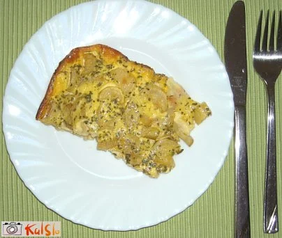 Na olju zarumenimo čebulo, dodamo buče, ki jih pokapamo s kisom ter dušimo 20 minut. Potem jih stresemo v namazan in pomokan pekač in polijemo s prelivom, ki smo ga predhodno dobro razmešali. Pečemo pri 200° 20 minut.