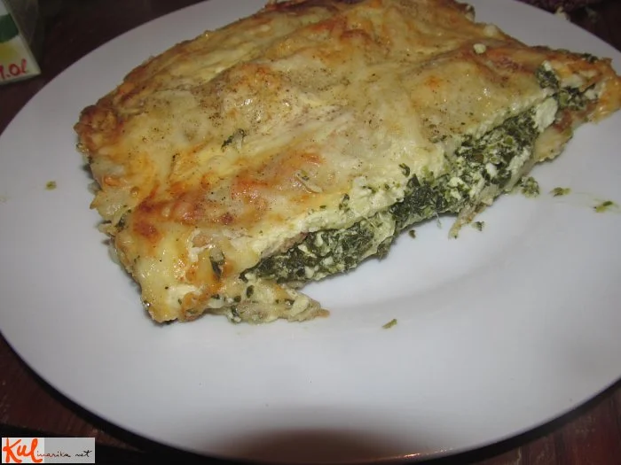 palačinke, namazane z nadevom iz špinače in skute, pečene v pečici