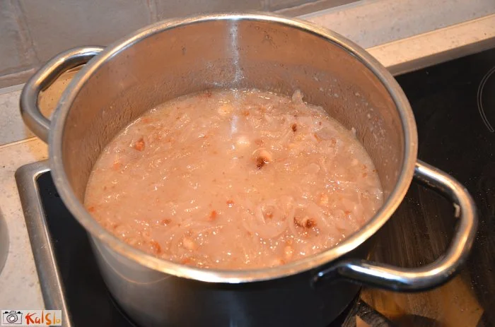 Kislo repo prelijemo z vodo. Vode vlijemo toliko, da sega cm čez nivo repe. Kuhamo 45 minut tako, da vre.