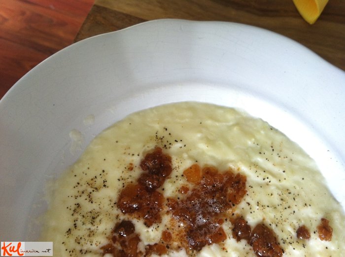Iz olja in moke obvezno ločeno naredimo zameto ter jo, ko se speni, vmešamo v "čorbo".