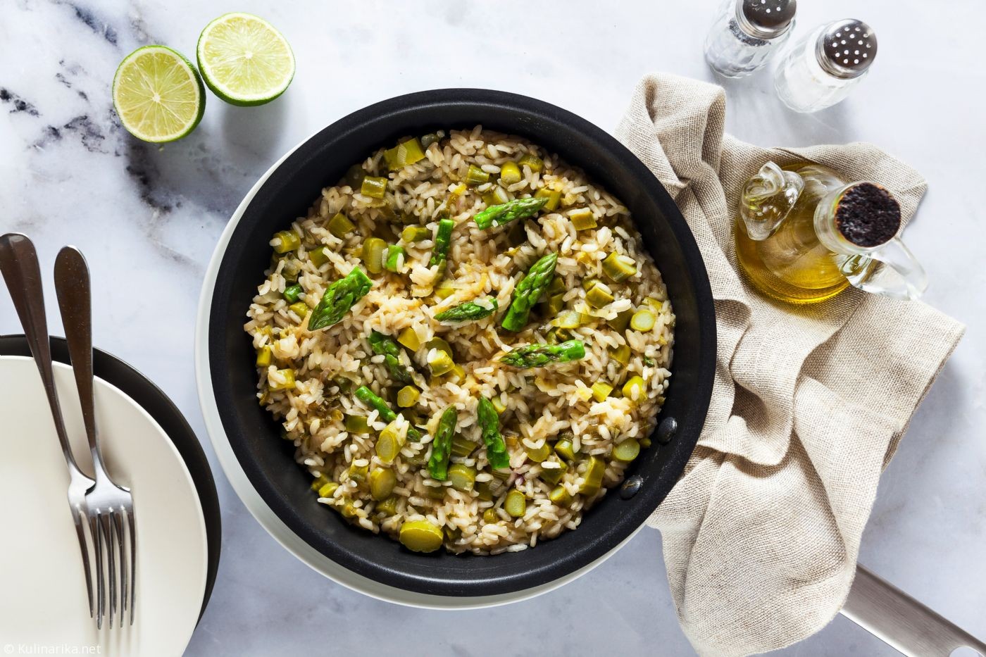 Šparglje očistimo in skuhamo v slani vodi. Skuhane šparglje zrežemo na koščke, pri tem na stran damo konice, ki jih bomo rižoti dodali na koncu.