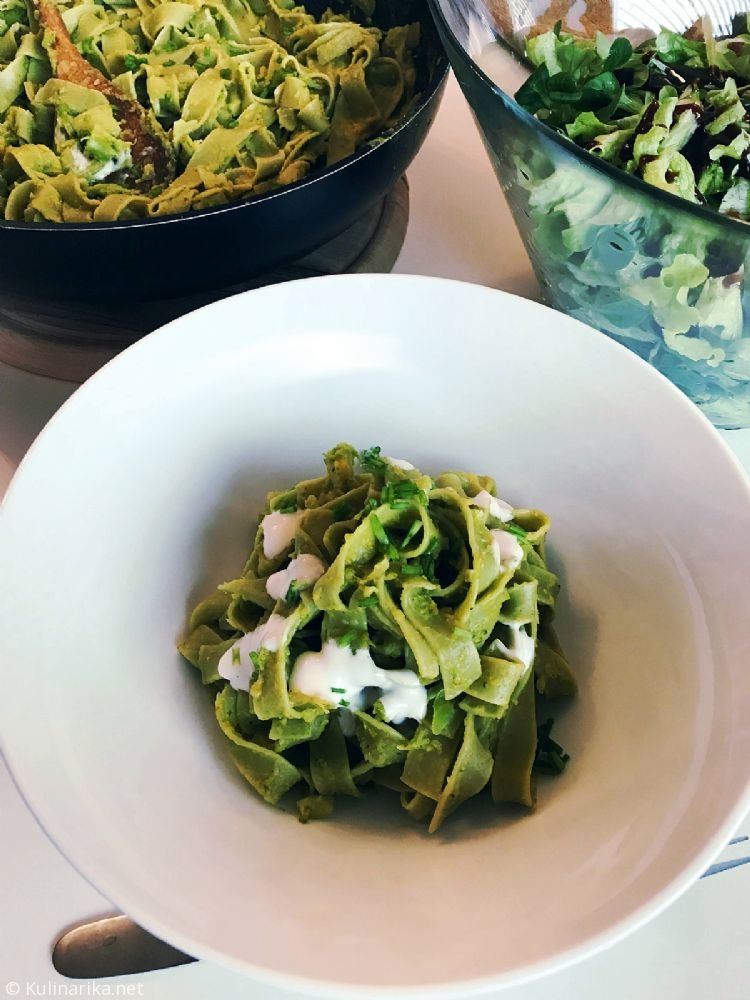 Špinačni rezanci z zeleno omakozeleno z zelenim