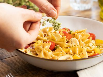Špageti z brokolijem in prepraženimi drobtinami z inčuni